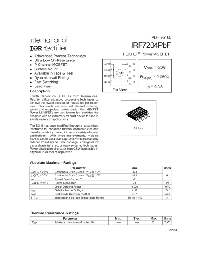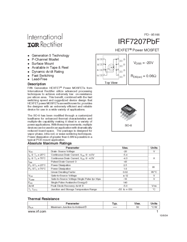 Tranzystor; IRF7205PBF; P-MOSFET; 4,6A; 30V; 2,5W; 70mOhm; unipolarny; HEXFET; SO8; SMD; INFINEON; RoHS