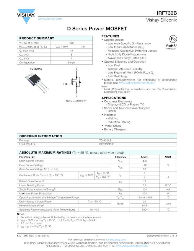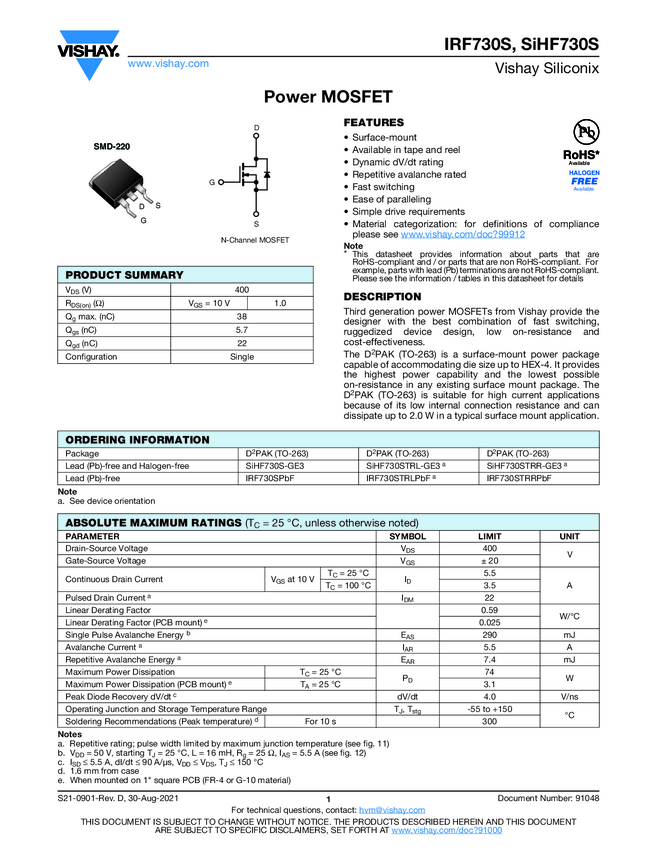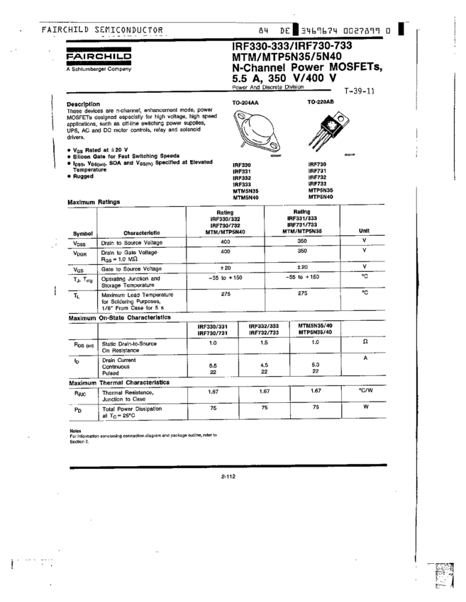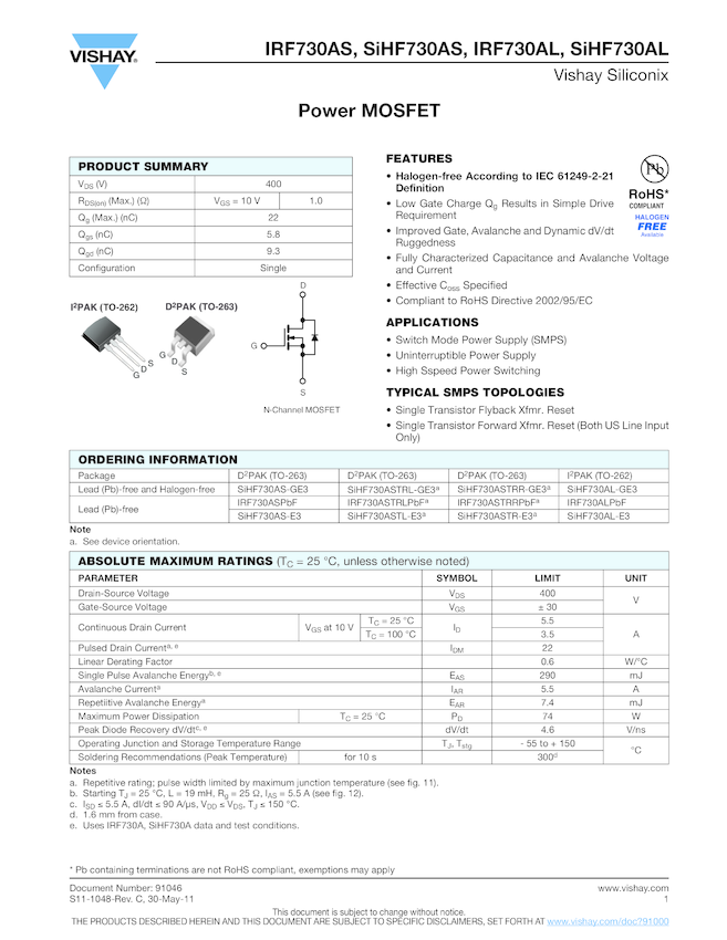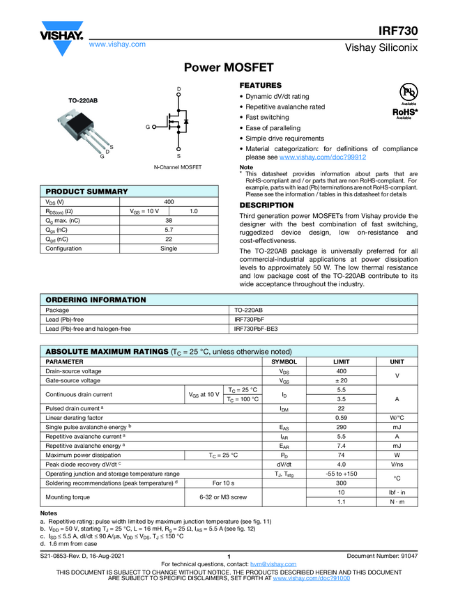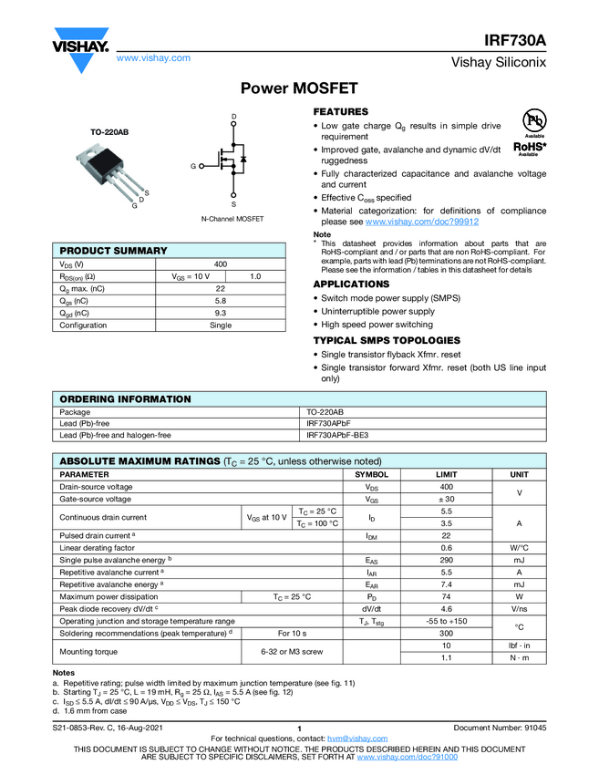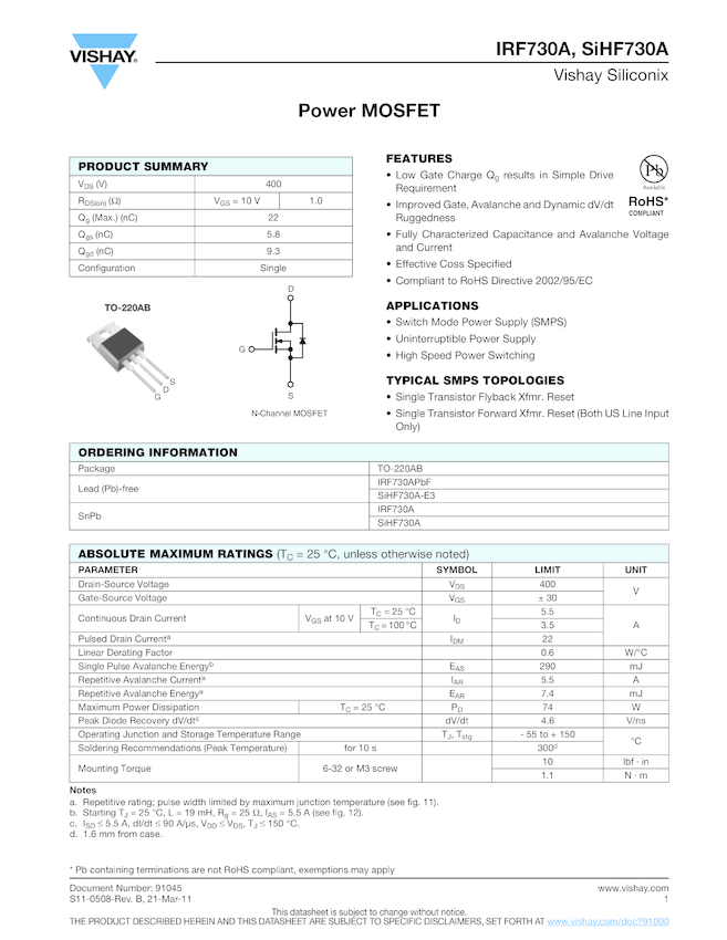 Tranzystor N-MOSFET, 5.5A, 400V, TO220