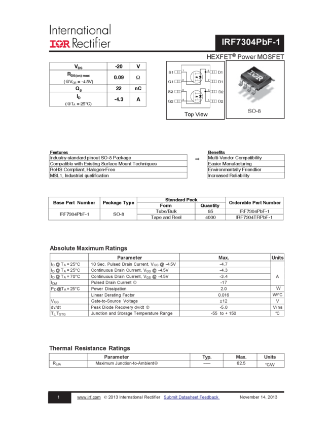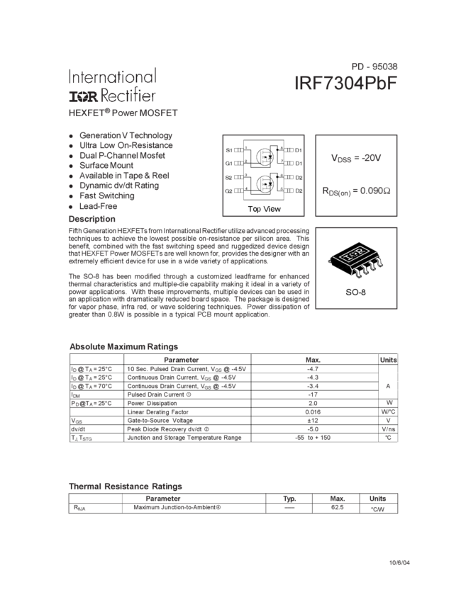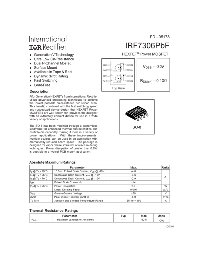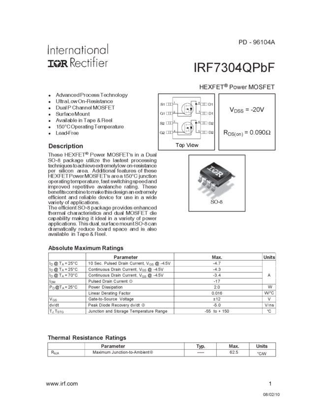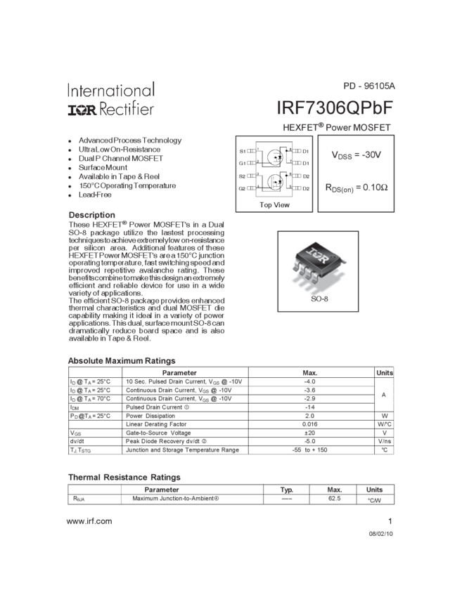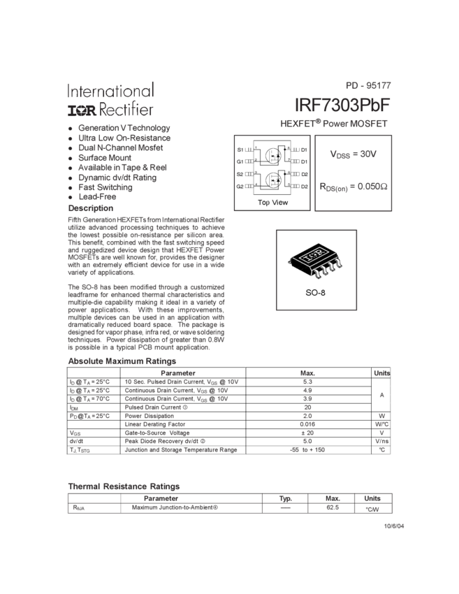 30V Vds, 3A Id, Dual HEXFET MOSFET, SO-8