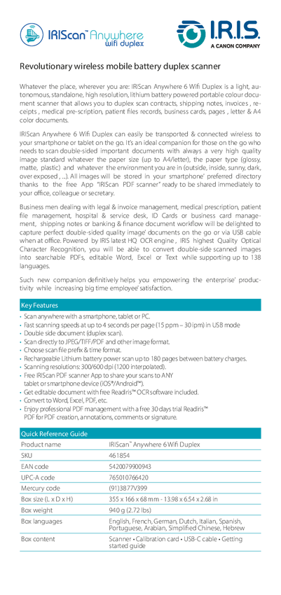 IRIScan Anywhere 6 WIFI Duplex15PPM