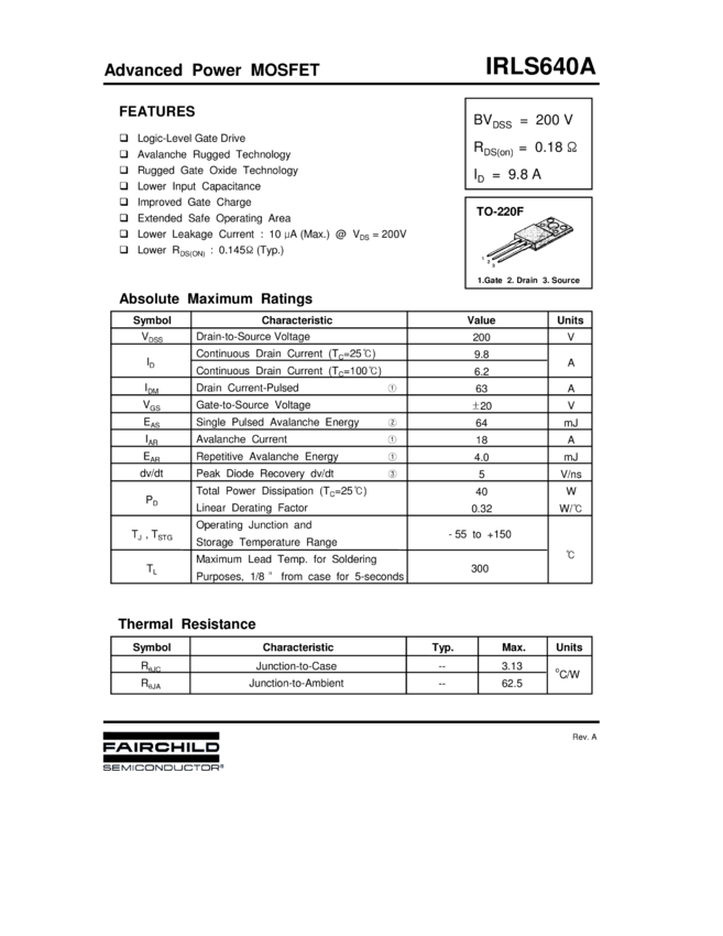 200V N-Channel Logic Level A-FET / Substitute of IRLS640