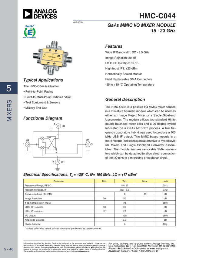 I/Q Mixer / IRM Module, 15 - 23 GHz