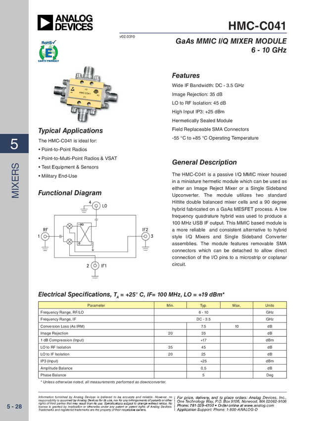I/Q Mixer / IRM Module, 6 - 10 GHz