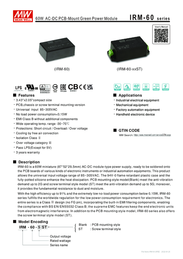 MEAN WELL IRM-60-12ST Zasilacz AC/DC 60 W