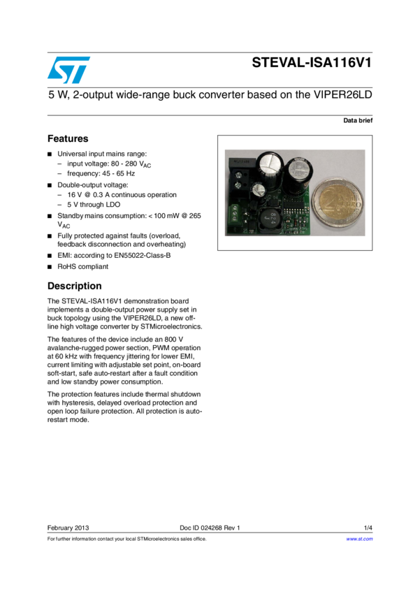 5 W, 2-output wide-range buck converter based on the VIPER26LD
