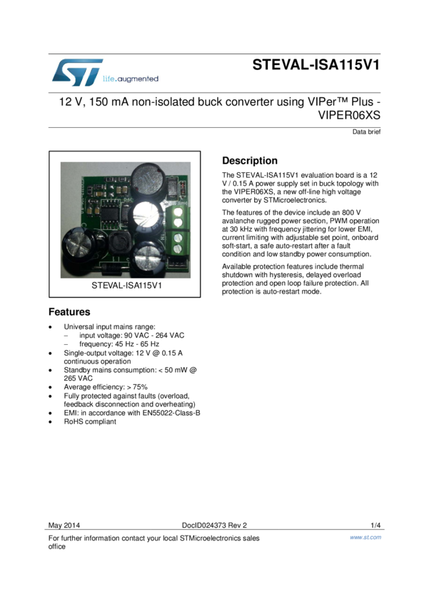 12 V, 150 mA non-isolated buck converter using VIPer™ Plus - VIPER06XS