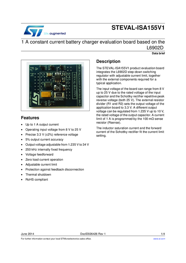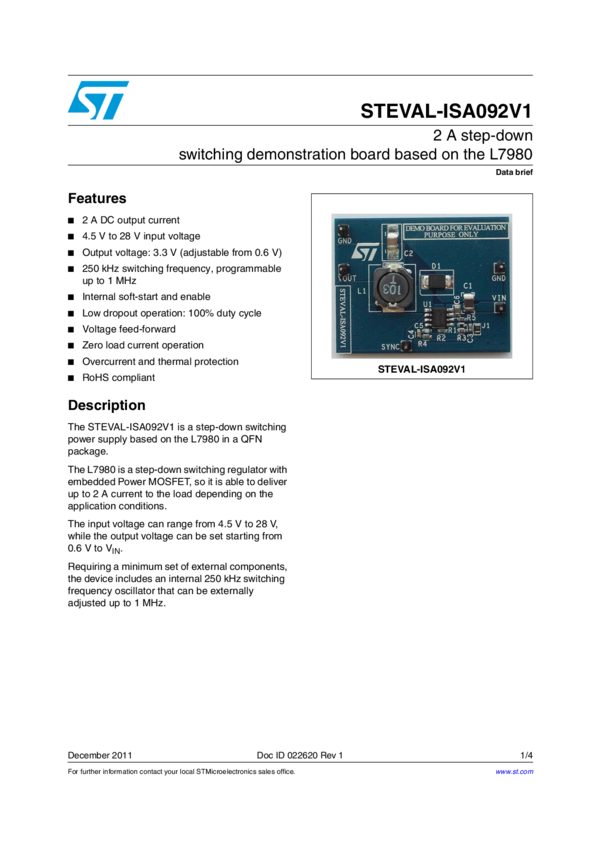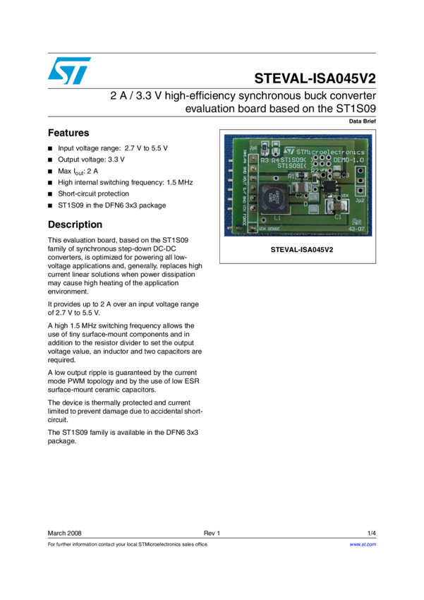 2 A / 3.3 V high-efficiency synchronous buck converter evaluation board based on the ST1S09