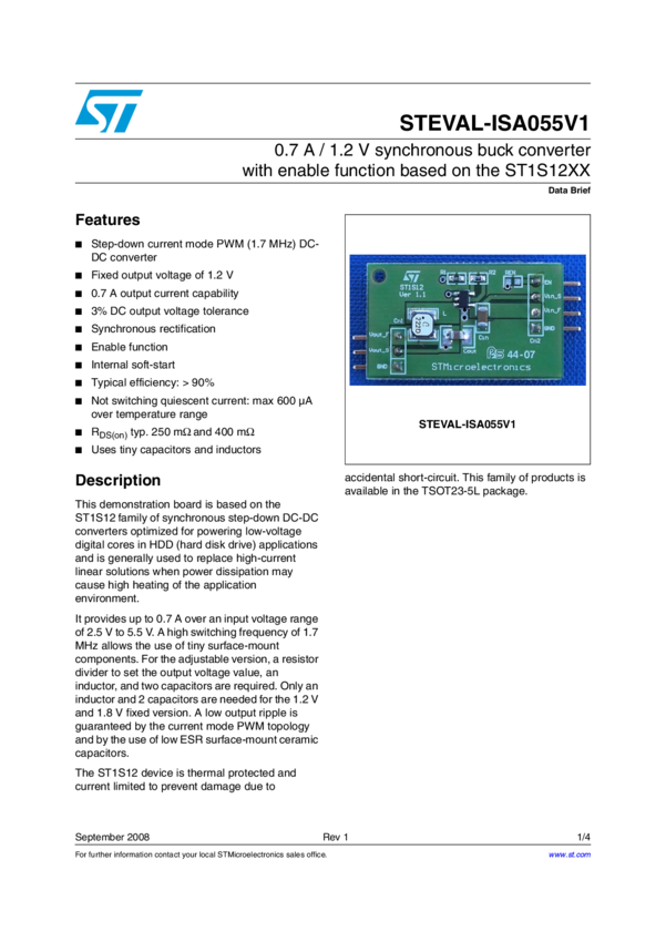 0.7 A / 1.2 V synchronous buck converter with enable function based on the ST1S12XX