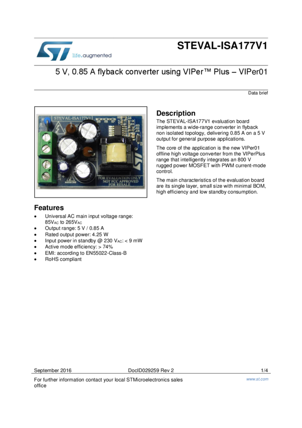 5 V, 0.85 A flyback converter using VIPer™ Plus - VIPer01