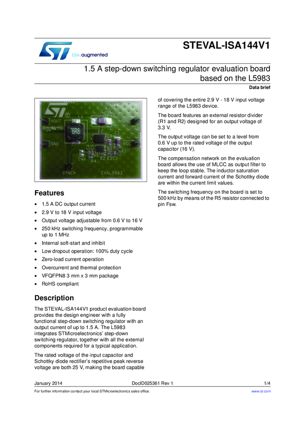 1.5 A step-down switching regulator demonstration board based on the L5983