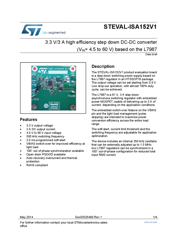 3.3 V/3 A high efficiency step down DC-DC converter (VIN= 4.5 to 60 V) based on the L7987