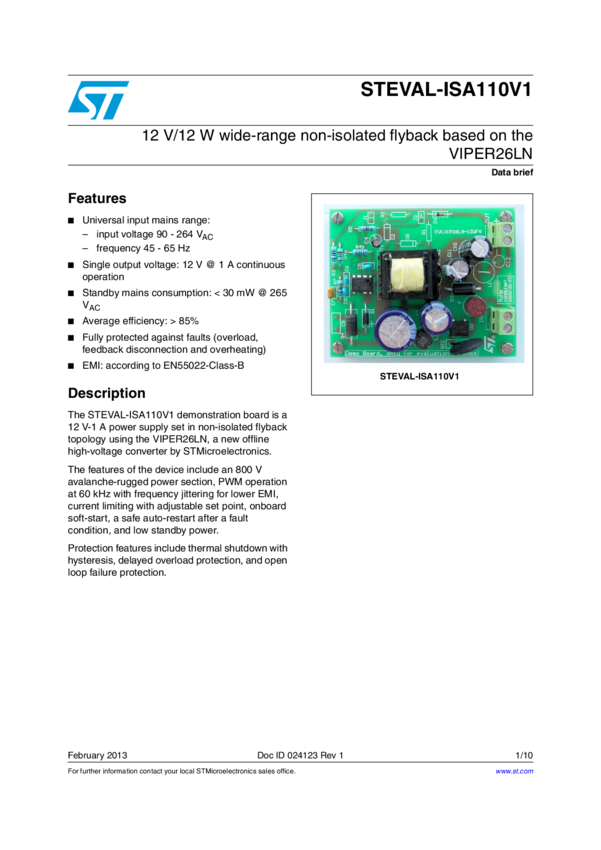 12 V/12 W wide range non-isolated flyback based on the VIPER26LN