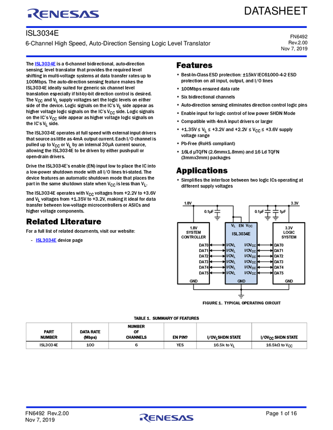 4-Channel And 6-Channel High Speed, Auto-direction Sensing Logic Level Translators