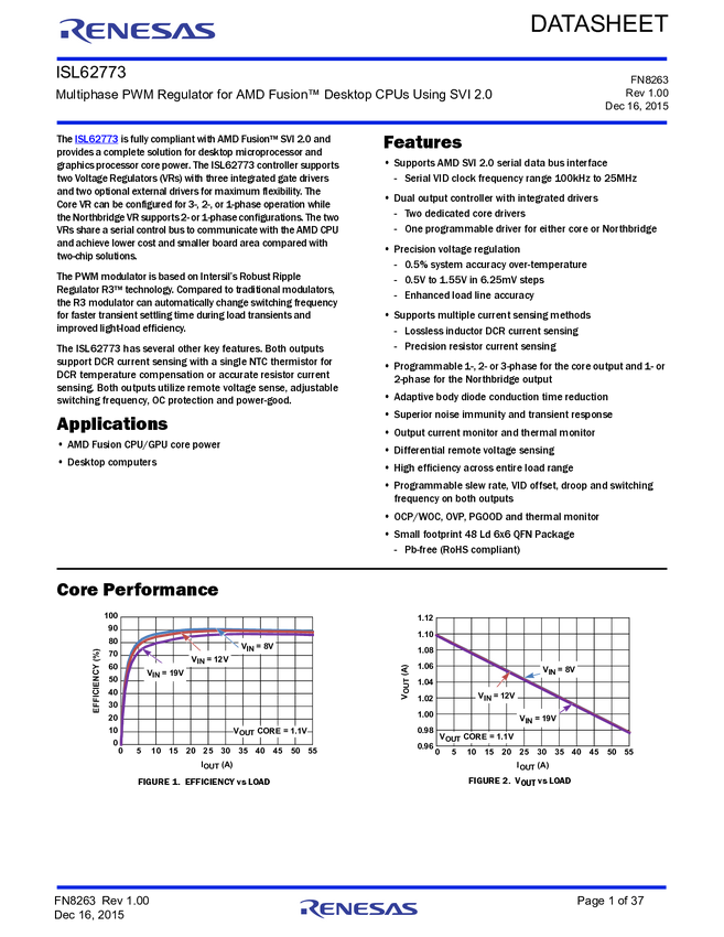 Multiphase PWM Regulator for AMD Fusion Desktop CPUs Using SVI 2.0