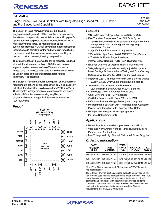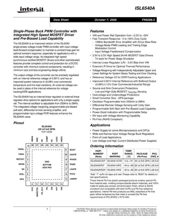 Single-Phase Buck PWM Controller with Integrated High Speed MOSFET Driver and Pre-Biased Load Capability