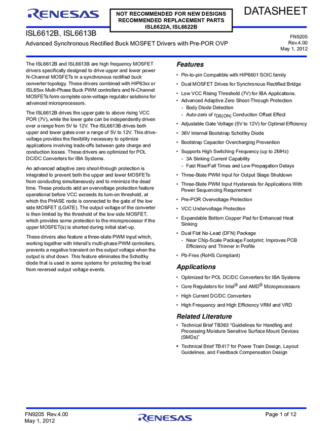 Advanced Synchronous Rectified Buck MOSFET Drivers with Pre-POR OVP