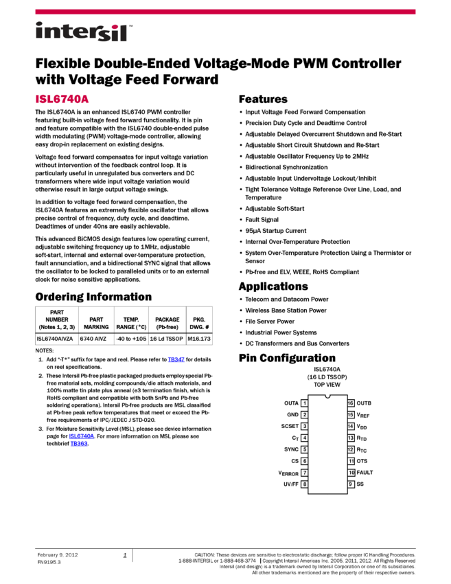 Flexible Double-Ended Voltage-Mode PWM Controller with Voltage Feed Forward