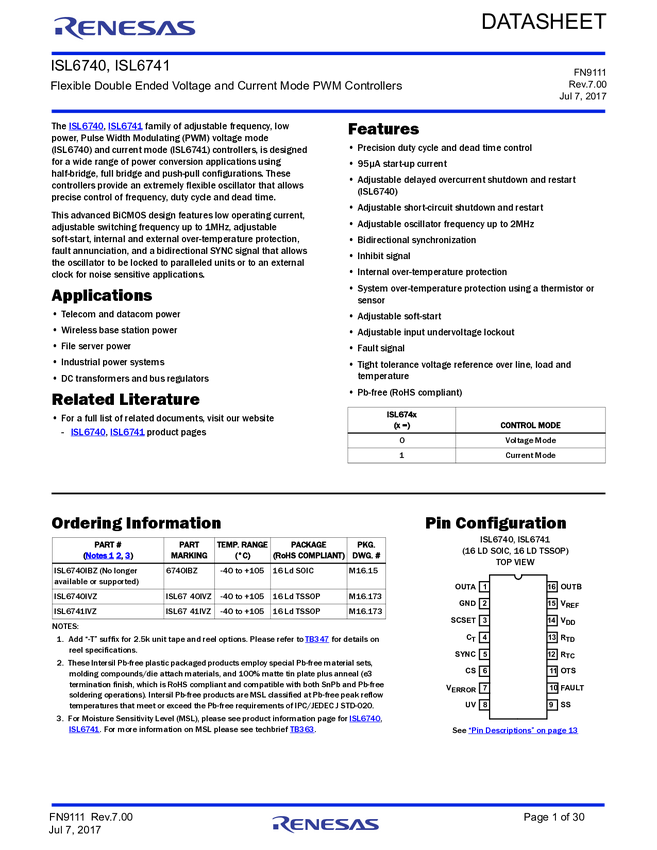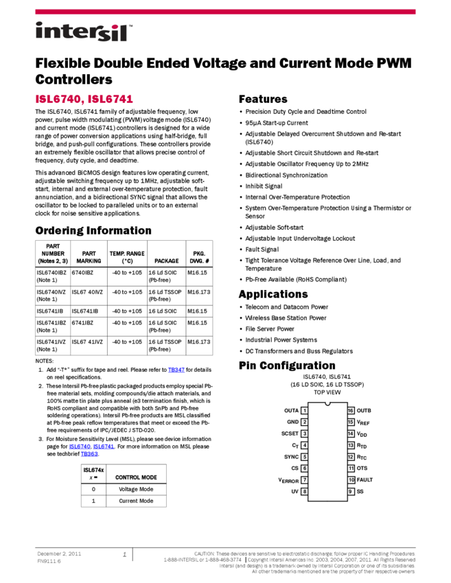 Flexible Double Ended Voltage and Current Mode PWM Controllers