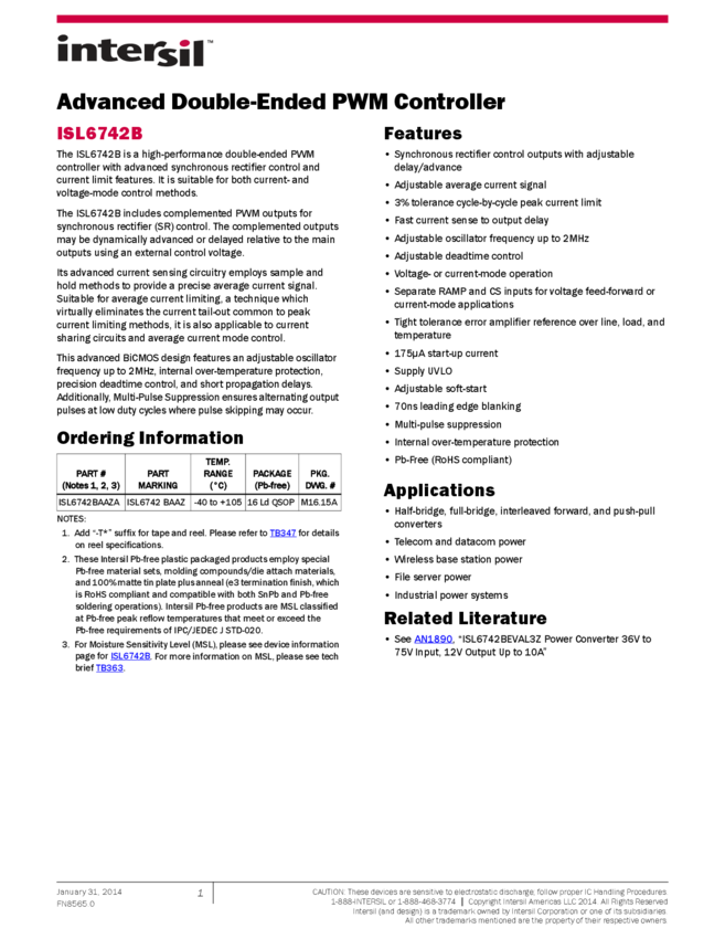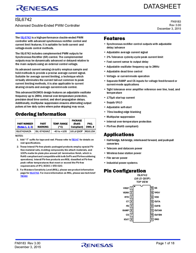 Advanced Double-Ended PWM Controller with Synchronous Rectifier Control and Average Current Limit