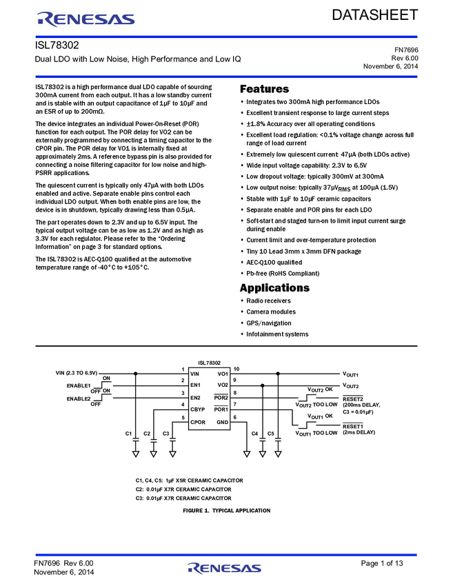 Dual LDO with Low Noise, High Performance and Low IQ