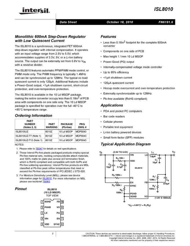 Monolithic 600mA Step-Down Regulator with Low Quiescent Current