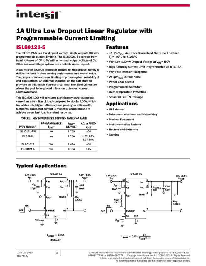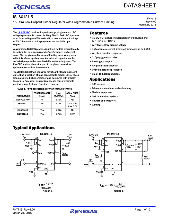 1A Ultra Low Dropout Linear Regulator with Programmable Current Limiting