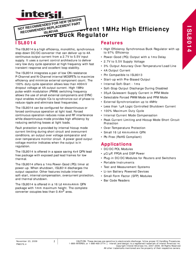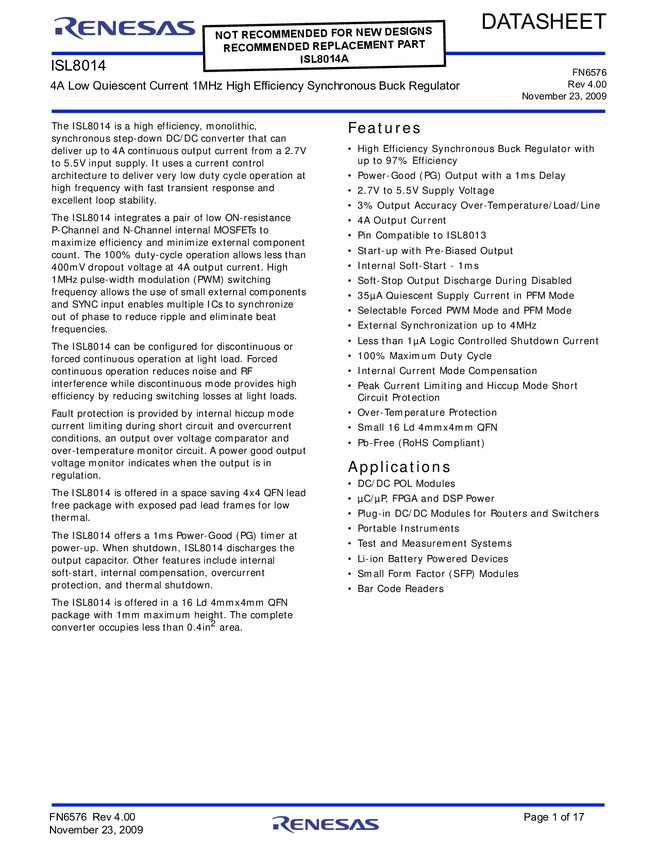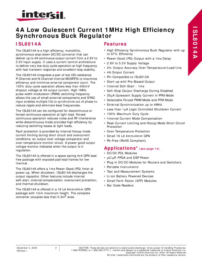 4A Low Quiescent Current 1MHz High Efficiency Synchronous Buck Regulator