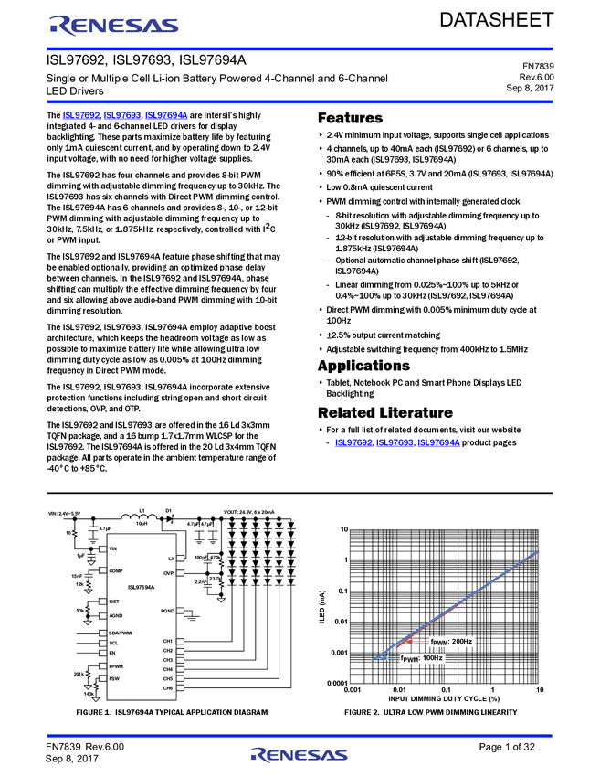 Single or Multiple Cell Li-ion Battery Powered 4-Channel and6-Channel LED Drivers