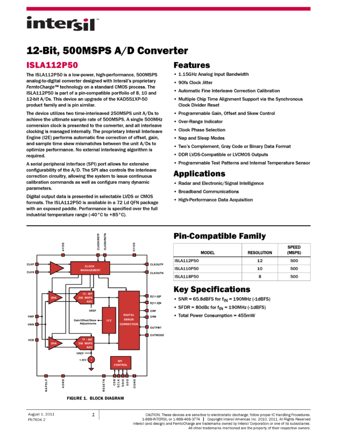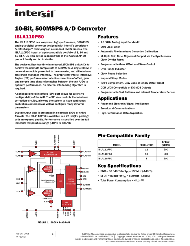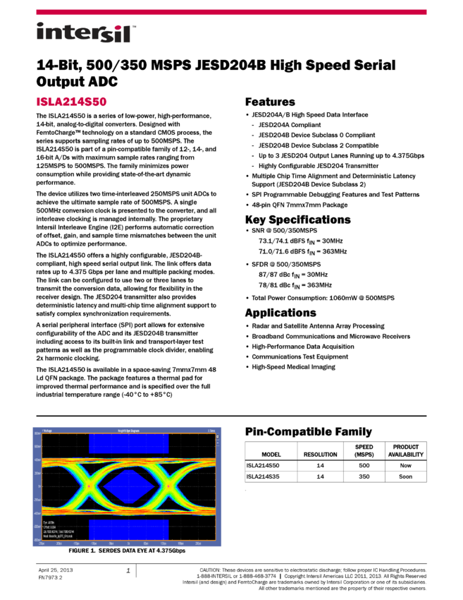 14-Bit, 500/350 MSPS JESD204B High Speed Serial Output ADC
