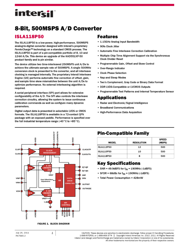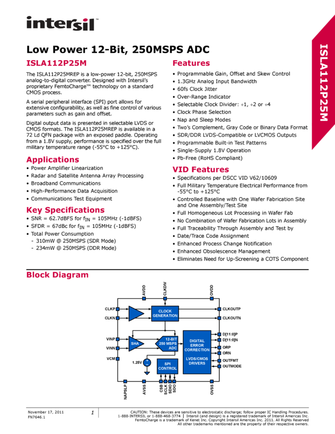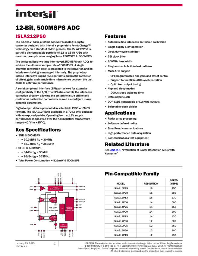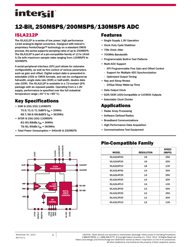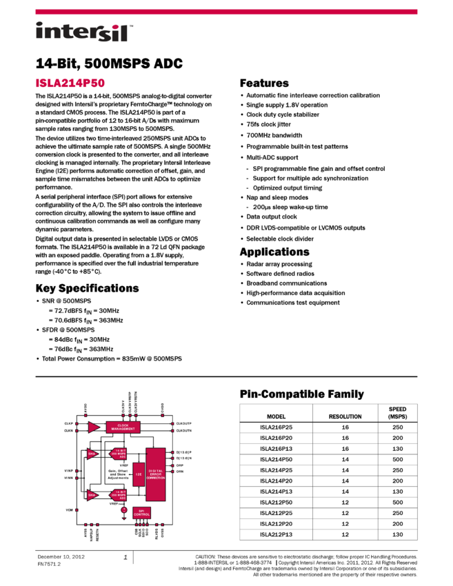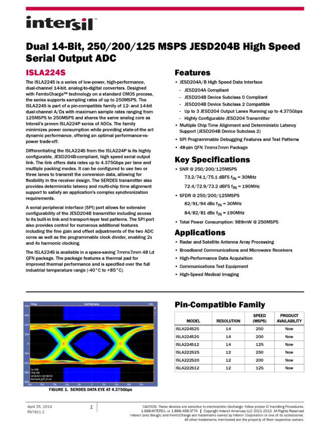 Dual 14-Bit, 250MSPS JESD204B High Speed Serial Output ADC