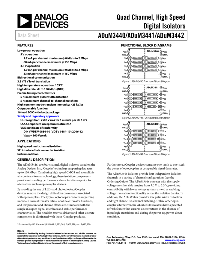 ADUM3442: Quad Channel, High Speed Digital Isolators