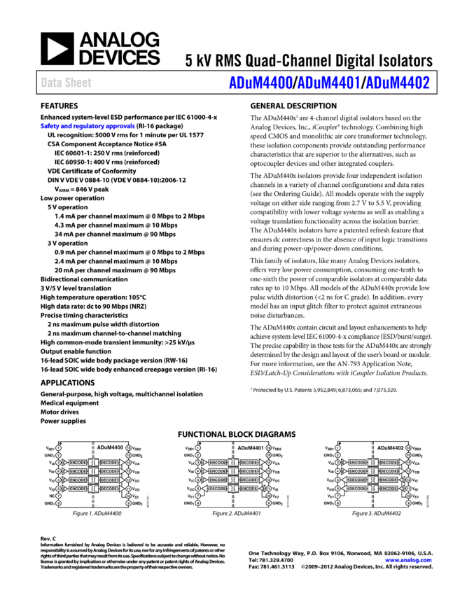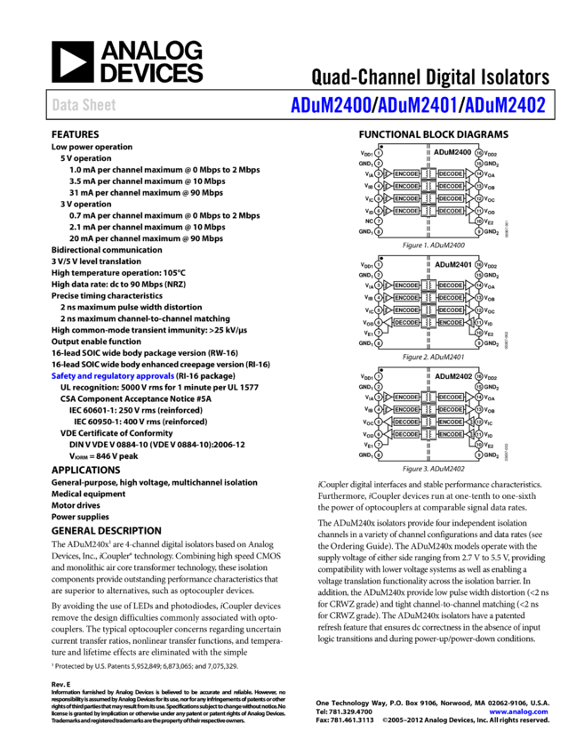ADUM4402: 5 kV RMS Quad-Channel Digital Isolators
