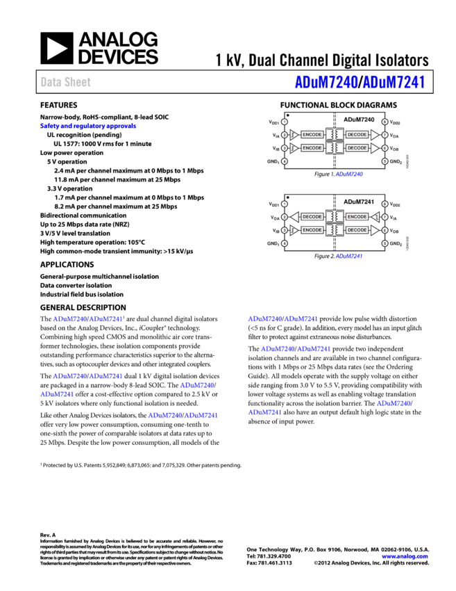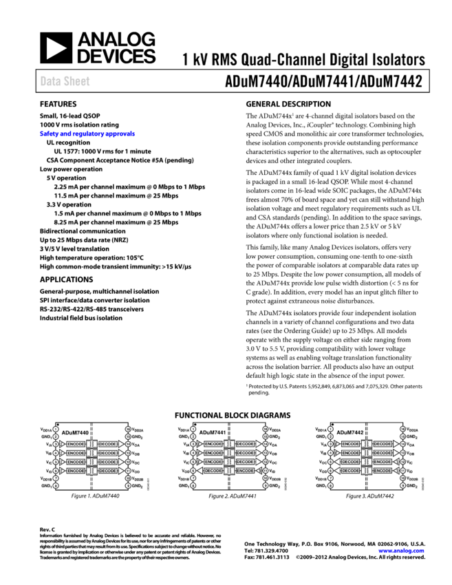 ADUM7442: 1 V RMS Quad-Channel Digital Isolator