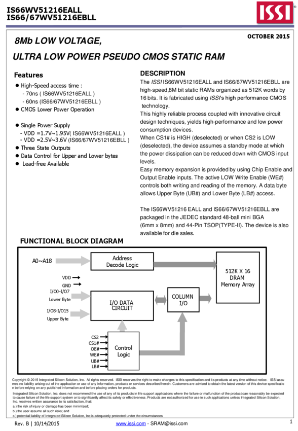 SRAM Chip Async Single 2.5V/3.3V 16M-Bit 1M x 16 55ns 48-Pin TSOP-I