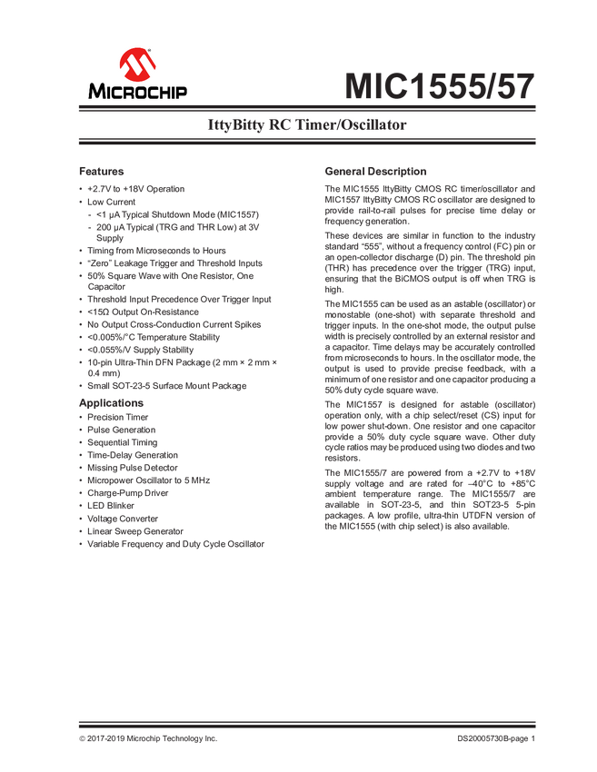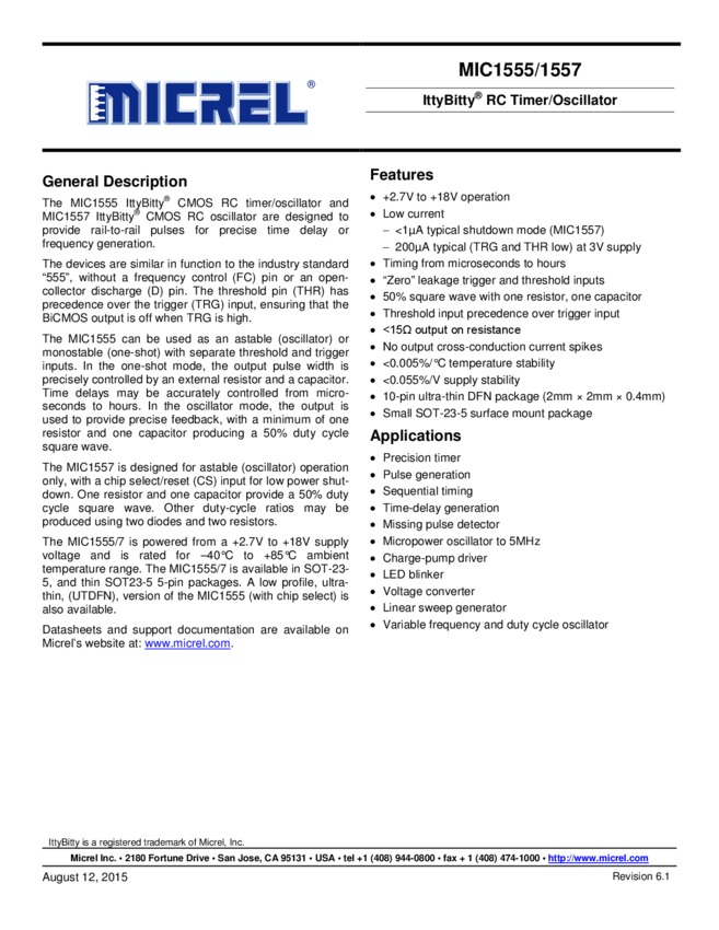 MIC1555/1557 - IttyBitty® RC Timer/Oscillator (11/05/2015)