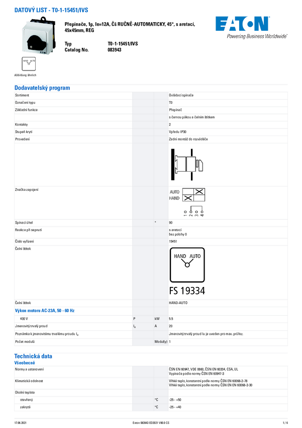 Eaton 083943 T0-1-15451/IVS Wyłącznik 1 szt.