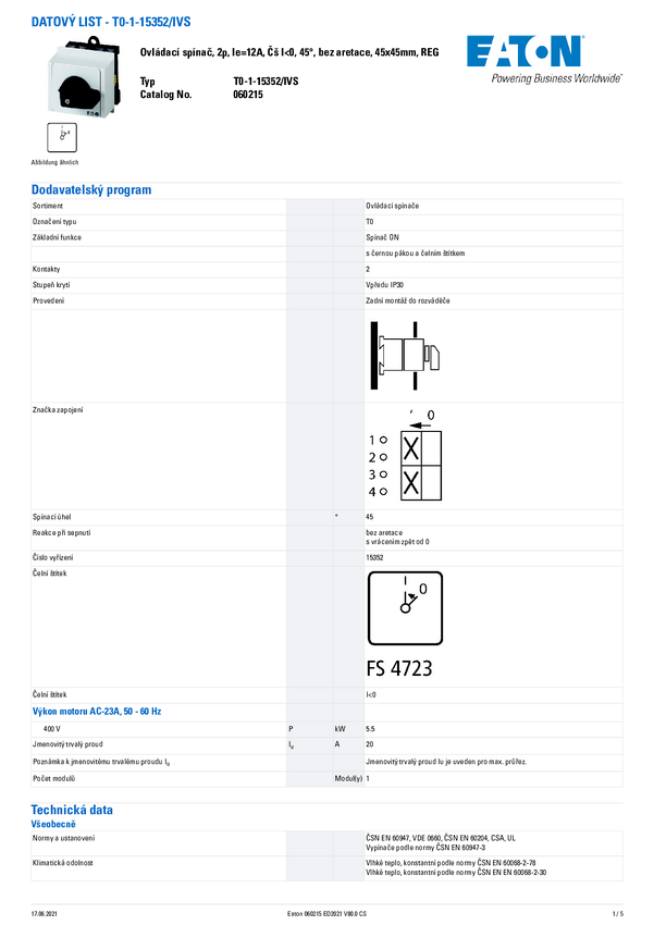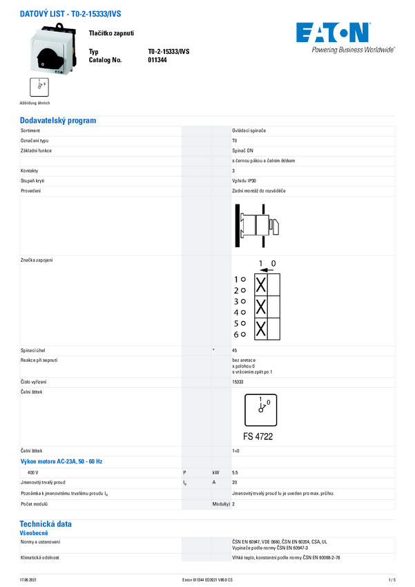 Eaton 013716 T0-4-15374/IVS Wyłącznik 1 szt.