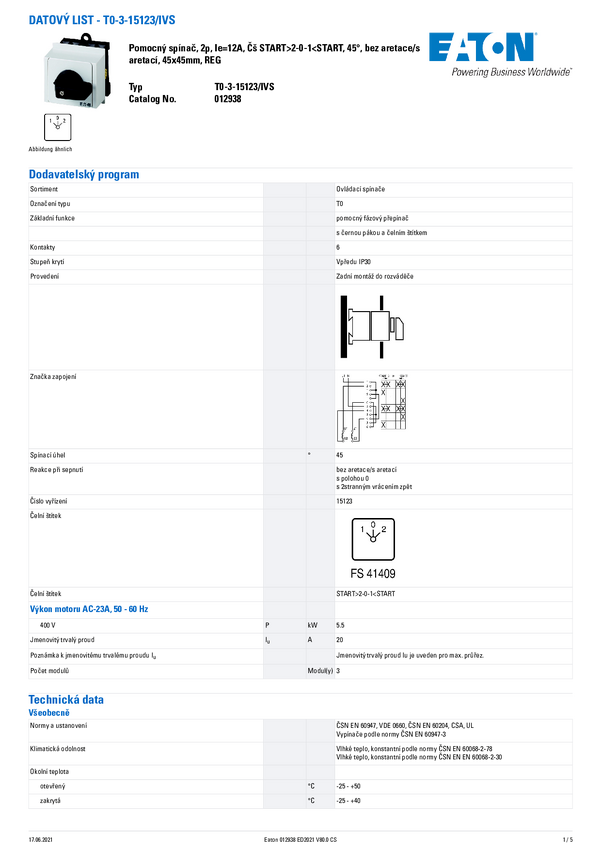 Eaton 012938 T0-3-15123/IVS Przełącznik fazy, pomocniczy 1 szt.
