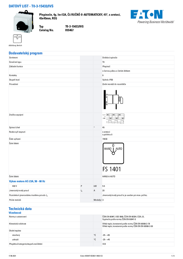Eaton 055467 T0-3-15433/IVS Wyłącznik 1 szt.