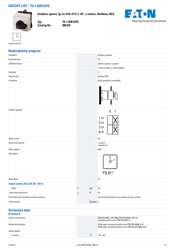 Eaton 009479 T0-1-8201/IVS Przełącznik ON/OFF 1 szt.