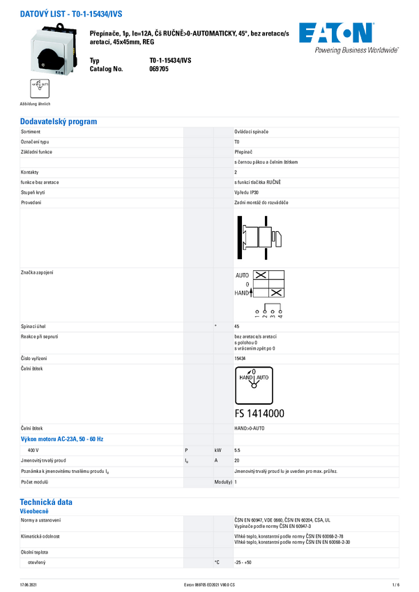 Eaton 069705 T0-1-15434/IVS Wyłącznik 1 szt.