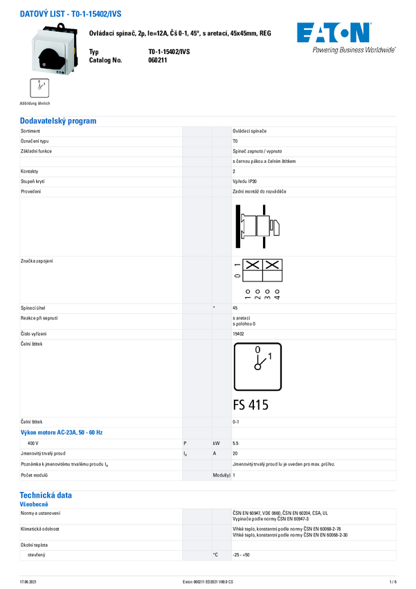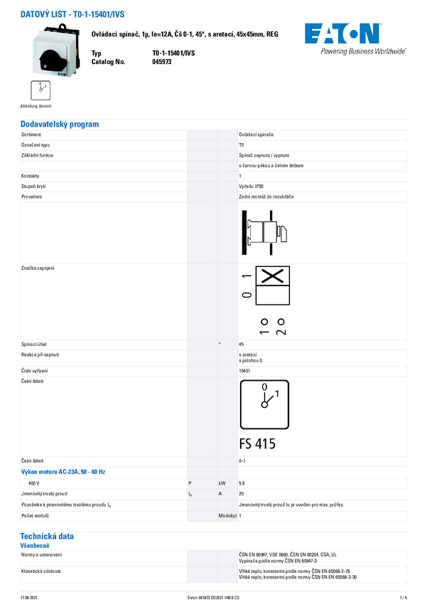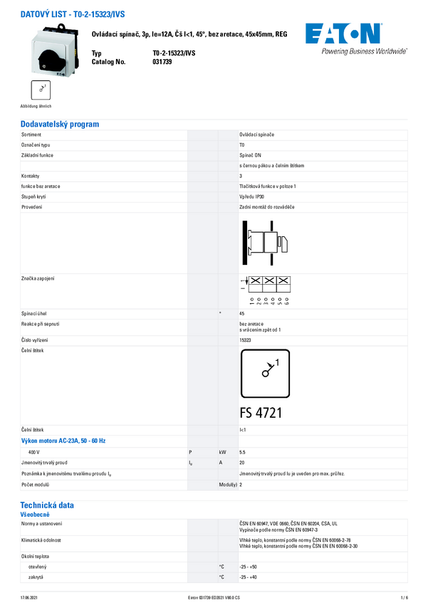 Eaton 041229 T0-2-15432/IVS Wyłącznik 1 szt.