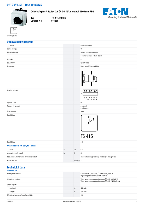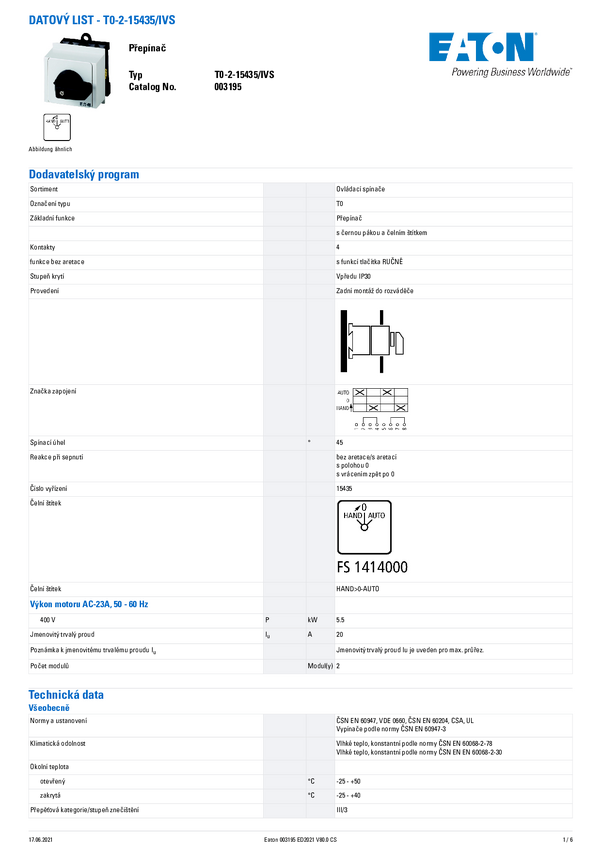Eaton 003195 T0-2-15435/IVS Wyłącznik 1 szt.