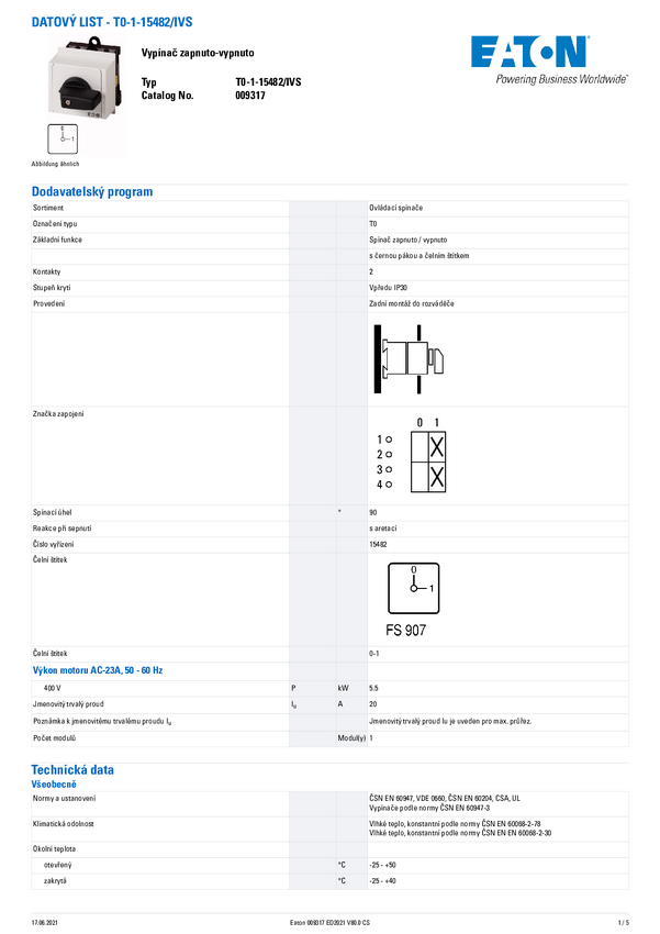 Eaton 009317 T0-1-15482/IVS Przełącznik ON/OFF 1 szt.