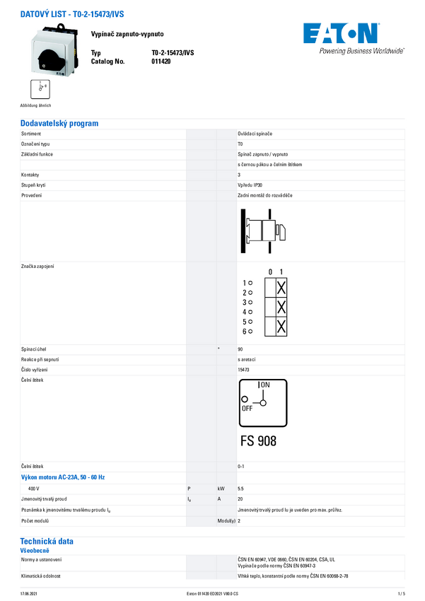 Eaton 011420 T0-2-15473/IVS Przełącznik ON/OFF 1 szt.