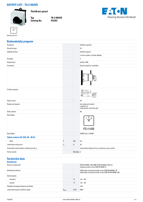 Eaton 012251 T0-2-99/IVS Przełącznik przyciskowy 1 szt.