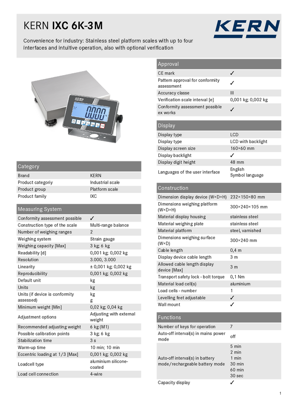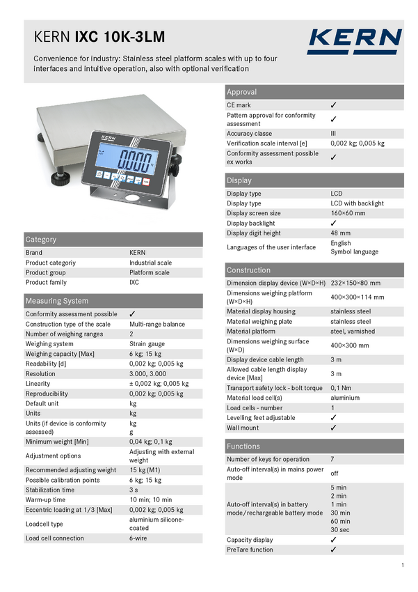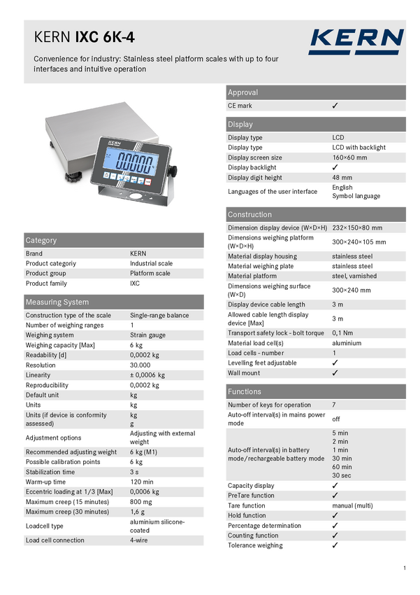 Kern Waga platformowa Zakres pomiaru maks. 6 kg Podziałka 2 mg