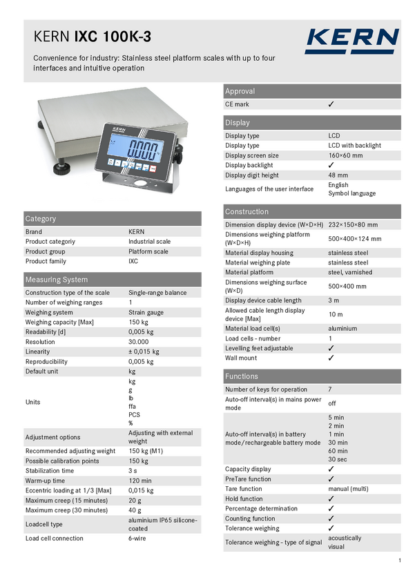 Kern Waga platformowa Zakres pomiaru maks. 150 kg Podziałka 5 g