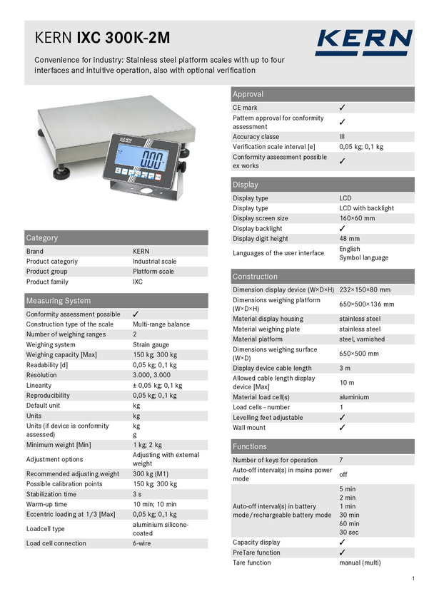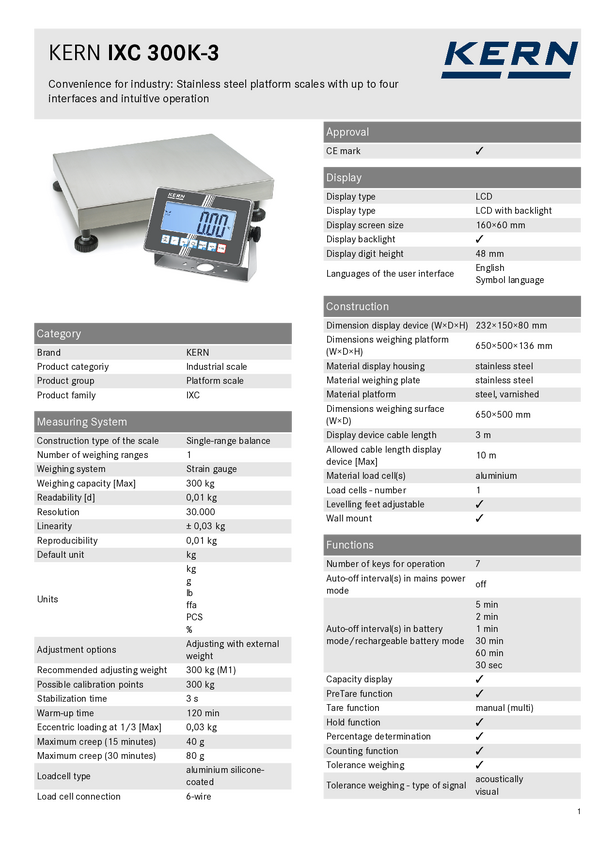 Kern Waga platformowa Zakres pomiaru maks. 300 kg Podziałka 10 g
