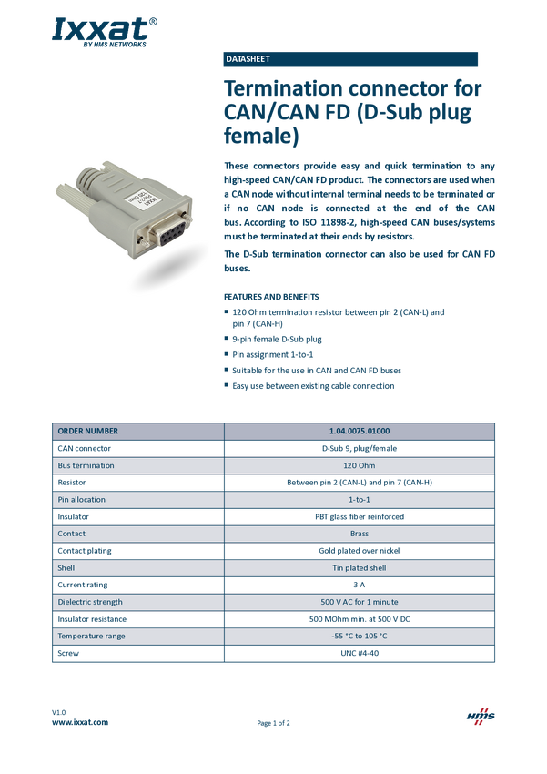 Terminator Ixxat 1.04.0075.01000, CAN Bus, D-SUB9
